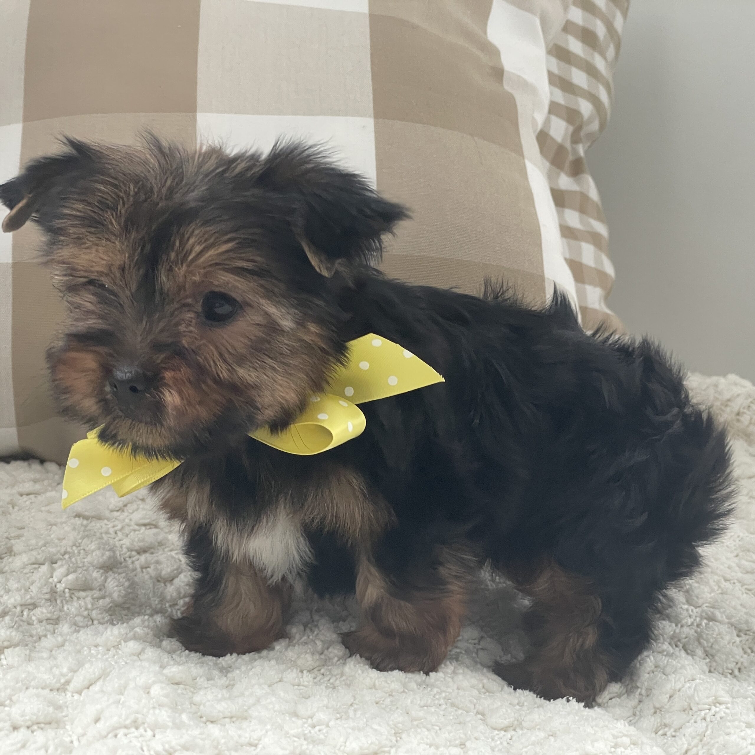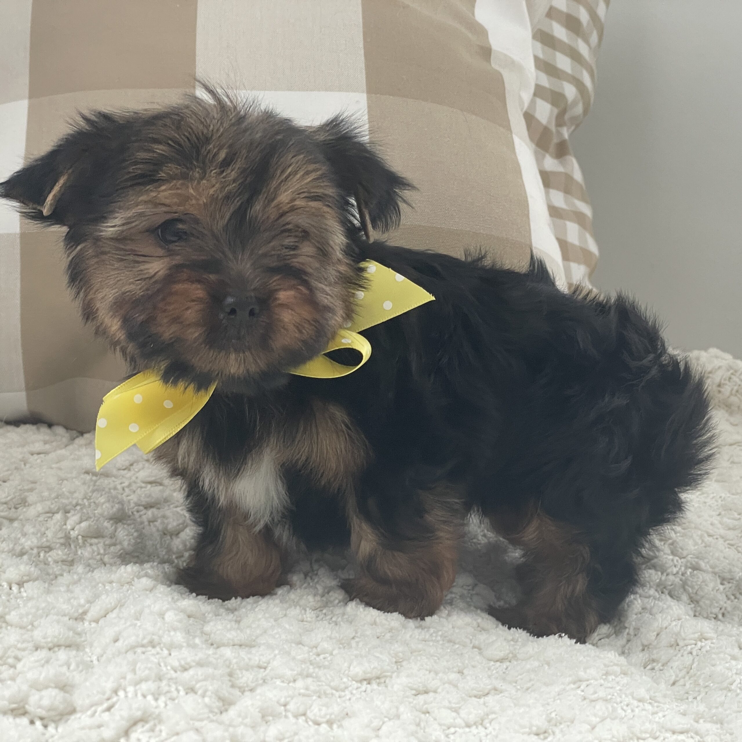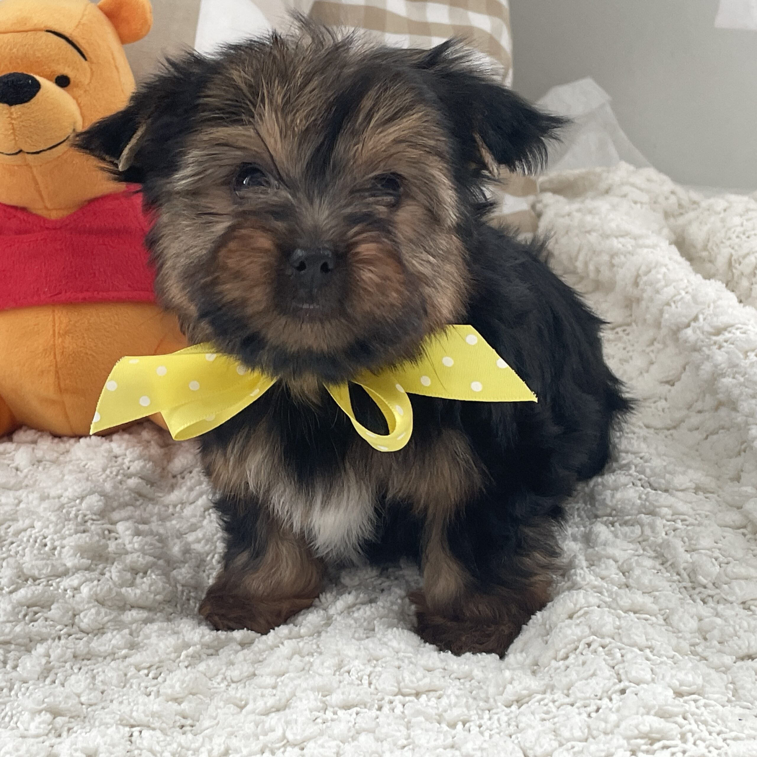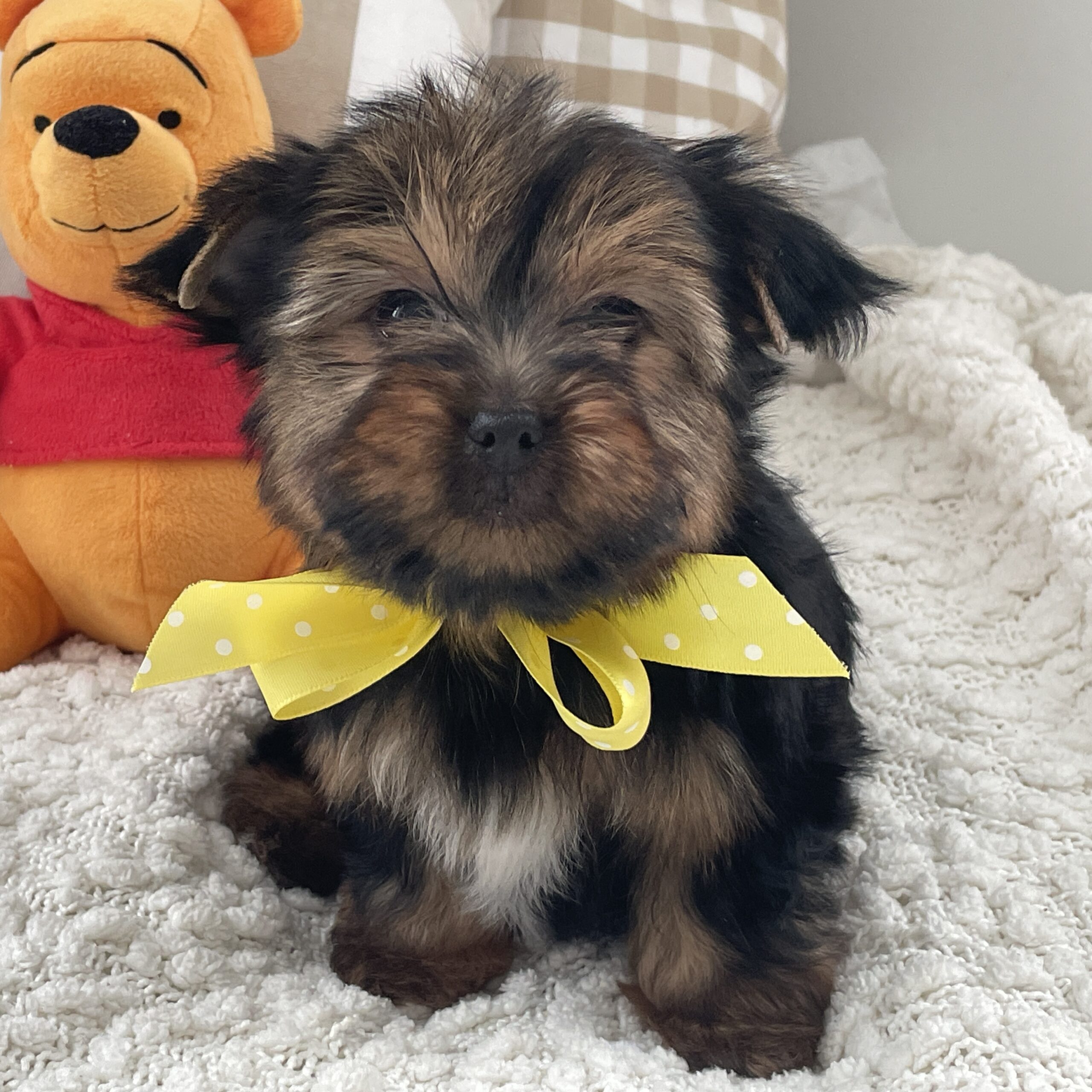 Fluffy is sweet little buddy. He loves playing and romping with his littermates and playing with his toys. He is more on the milder side, not wild and crazy. We are expecting him to be @ 5 lbs full grown. He is so so precious and you can’t go wrong on this little guy.
