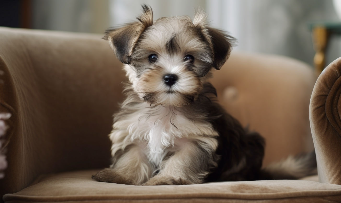 Morkie puppies are the result of breeding a purebred Yorkshire Terrier with a purebred Maltese. This designer breed has inherited the best features from both of its parent breeds, resulting in a small yet sturdy dog with a silky, flowing coat that can vary in color from black, tan, and white to various shades of brown and cream.